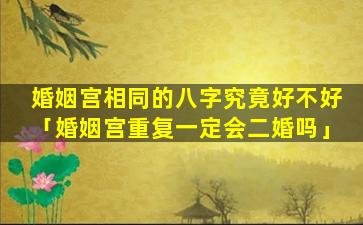 婚姻宫相同的八字是否好坏,需,要结合具体的命理格局来 🐼 综合判断不能一概而论。