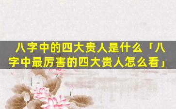 在八字命理学中,四,大,贵人是指四种特殊的神煞它们代表着贵人运势和助力对命主 🐠 的事业 💮 、财运、婚姻等方面都有着积 🐼 极的影响。