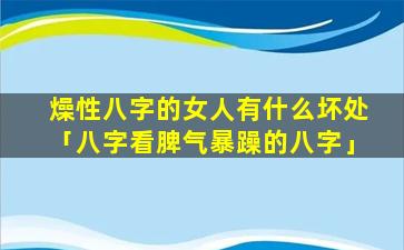 因 🌾 此 🌷 ,并不能简单地 🦢 将“燥性八字的女人”与坏处联系起来。