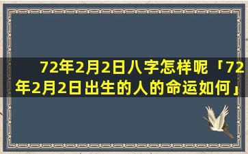 总体运势:1972 年 2 月 2 日出生的人,一生,运势起伏较小总体来说较为平稳。他,们,聪。明,智。慧,善。于。交际事 🦉 业发展稳定財運較好但需謹慎投資感情運勢較旺但需注意經營婚姻健康方面要注意泌尿系統健康