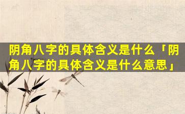 在八字 🐼 命 🐧 理学中,“阴角八字”指以下几种八字组 🦈 合: