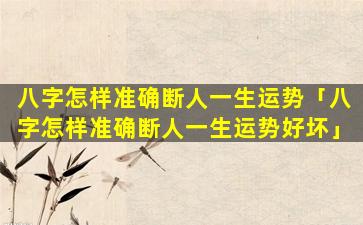 八字断人 🦋 一生 🌳 运 🦆 势好坏的方法: