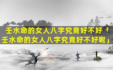 壬 🐎 水 🦟 命女人的 🦢 八字好不好,要根据具体的八字结构来综合判断。