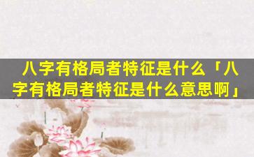 八字有格局者特征指的是命理学中八字,组,合形成特定结构使命主具 🐅 有某种特殊能力或 🌾 运势特征。这些格局通常有以下特点: