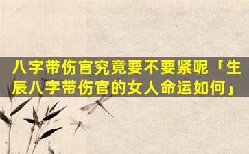 八字带 🐱 伤官是否要紧,需要根据其 🌼 所在的具体位置、组合以及八字整体格局来判断。