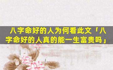 八字命好的 🦟 人阅 🌹 读本文的原因: