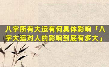 八字大 🌷 运对人的影响程度 🦆 因人而异,但它通常被认为对个人的生活和命运有重大影响。