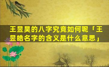 因 🦉 此,王昱 🦉 皓这 🐞 个名字寓意着: