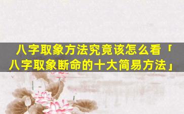 八字取象断 🕸 命的十大简 🌻 易 🐺 方法