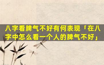 八字命理 🦋 中脾气不好的表现