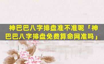 因此,对于“神巴巴 💐 八字排盘免费算命网”的,准确性需要谨慎对待。建,议。将算命结果仅作为参考不应将其作为生活决策的唯一依据