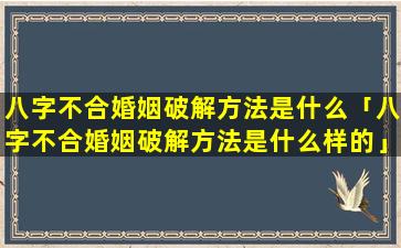 八字不合的婚 🌵 姻破 🐶 解方 🐶 法