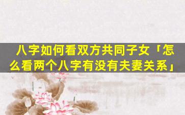 如何从八字看双方 🐱 共同子女的 🌿 命运