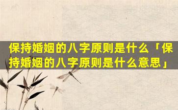 “保持婚姻的八字原则” 指的是八个汉字,代,表着婚姻中重要的原 🐧 则有助于维持和谐稳定的婚姻关系。