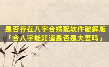 抱 🐴 歉,我不确定“是否存在八字合婚配软 🐝 件破解版是”什么意思。请,重。新 🐋 表述您的问题我会尽我所能回答您
