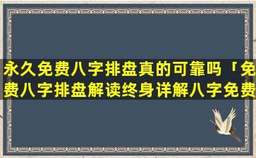 永久 🌲 免 🌴 费八字 🦍 排盘的可靠性