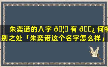 综合评价:"朱"奕 🕸 诺是一个寓意 🐒 良好、音、律和谐搭配性强的名字。它寓意着孩子聪明杰出 🦉 ,诚,实。守信前途光明