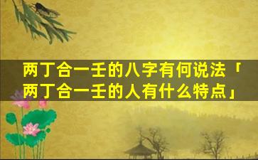 两丁合一壬 🦟 命格的特点