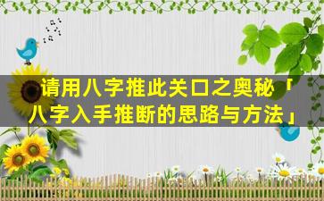 需掌握准确的 🐼 命理知 🌲 识和推断 🦈 技巧。