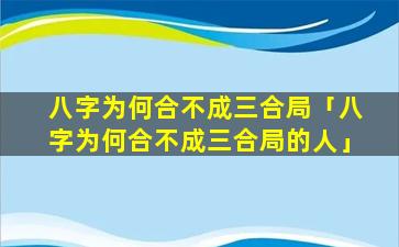 八字合不 🐳 成三 🐶 合局的原 🐒 因