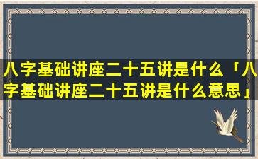 “八 🐡 字基础讲座二十五讲”指的是一种学习八字命理学基础知识的课 🦈 程,包含二十五次讲座。