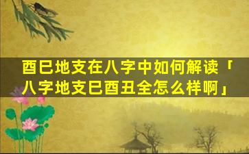 八 🐼 字 💐 中酉 🐟 巳地支的具体解读