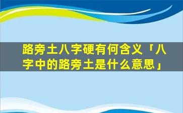 根据八字 🐱 命理学中的 💮 “路旁土 🐧 ”说法: