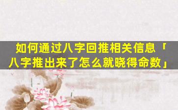 二、八字回推 🌼 相关信 🌲 息步骤