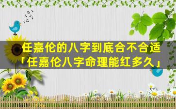 是否合适:是否合适要看具 🕸 体情况,但,从,命理上看任嘉伦的八字并没有明显的破损或相 🐵 克总体来说是比较适合自己 🦢 的。