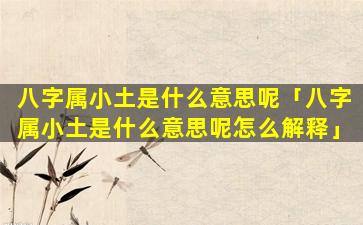 “八字属小土”表示一个人的命盘中土,元,素较弱但仍然具有一点土元素 🐦 的影响力。这意味着: