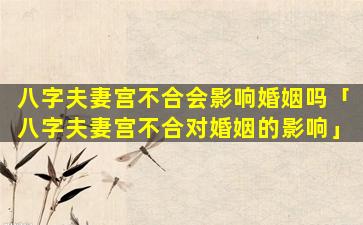 八字夫 🐝 妻宫不合对婚姻的 🐘 影响