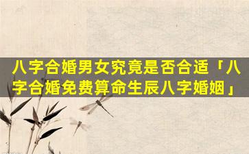 八字合婚男女是否合适是一个复杂的问题,不能简单地用是“或否”来“回”答。建,议,在。进行八字合婚的同时也要考虑其他因 🐡 素并结合实际情况做出判断