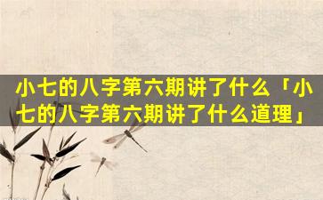 “小七 ☘ 的八字第六 🦉 期”