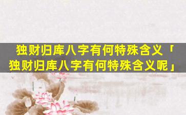 "独 🌷 "财归库是一种八字命理术语是 🦢 ,指八字中出现以下特点: