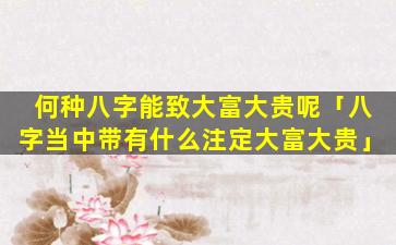 八字中具备以下特征 🌼 者,有望 🐈 致大富 🐠 大贵: