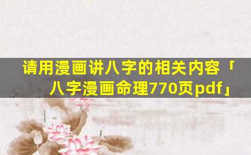 抱歉,我没有“八字漫画命 🐟 理770页pdf”的信 🦁 息。