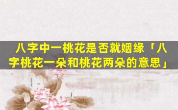八字中一个桃花不代表一定的姻 🕊 缘桃花。在八字中代表异性缘或异性关系,但。其具体含义还需结合其他因素判断