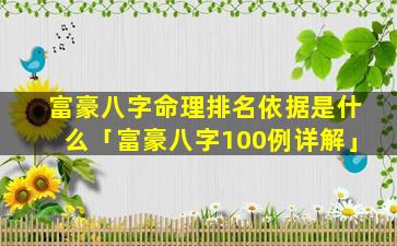 富豪八字命理 🐅 排名依据通常包 🦆 括以下方面: