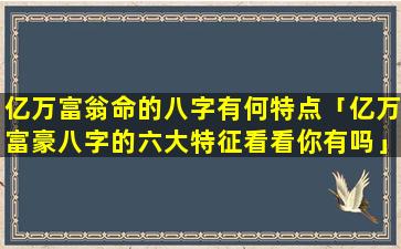 亿万富豪 🐡 八 🦅 字的 🍁 六大特征