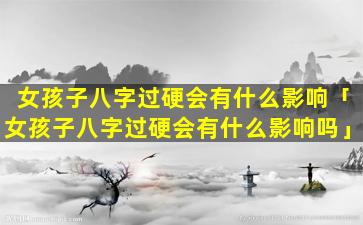 在八字命理学中,没 🌹 有八字“过硬”这,一说法因此不 ☘ 存在女孩子八字过硬会有什么影响的说法。