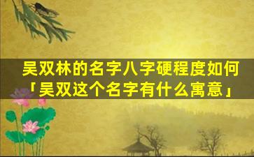 综合 🐱 来看,“吴双林”这个名字的八字硬度较高 🐞 。