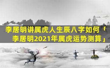李居明2021年属虎运势测 🦢 算
