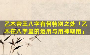 乙木 🐅 帝王八字的特别 🐱 之处在于 🕷 以下几个方面:
