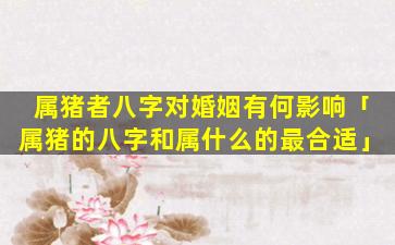 属 🐡 猪者八字对 🦋 婚姻的影响