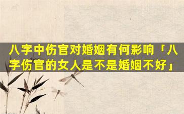 八字伤官的女人是否婚姻不好并无绝对的结论伤官是八字 🐡 。中 🕷 的一个五行神煞,代表聪明、才、智,独。立对婚姻的影响也需要结 🐟 合整个八字格局来综合判断