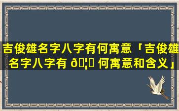 综合寓意:吉俊 🦆 雄一名寓意着 🐳 拥有祥瑞的福气 🐴 、英俊的外表和强健的身体。寄、予、了。父母对孩子吉祥如意健康强壮品貌出众的期望