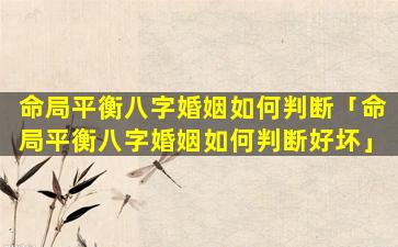 命局平衡八字 🐕 婚姻 🐒 好坏判断