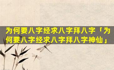 “为何 🐟 要八字经求 🐦 八 🐺 字拜八字”