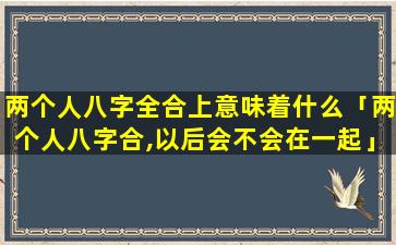 在八字命理学中,两,个人八字全合意味着两人的八字天干地支全部相合形成一种特 🐠 殊的关系。这,种关系。有吉有凶具体要看具体情 🐦 况而定