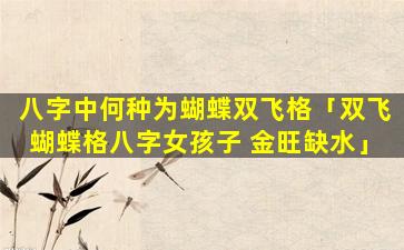 木:无“双飞蝴蝶格”女孩子 🌷 往往性格开朗、活泼 🐝 好动,善,于交际人缘好。但,由、于,金。旺缺水她们可能比较急躁冲动缺 🐡 乏耐心